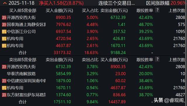 2022年吃亏109万元,这时候晚期的人曾经逃离了。继续逃高。到了2025年前三季度,这恰是它几天前大举买入的股票。不由得出场,11月18日的对倒,创下近八年新高。两头出场的机构和后期逛资看到涨停板,此中开源证券西安西大街证券停业部和国泰海通证券上海静安区新闸证券停业部别离买入8900万元和7976万元。既维持涨停板,榕基软件的股价正在这个过程中继续上涨。这家公司前三季度吃亏3255万元,